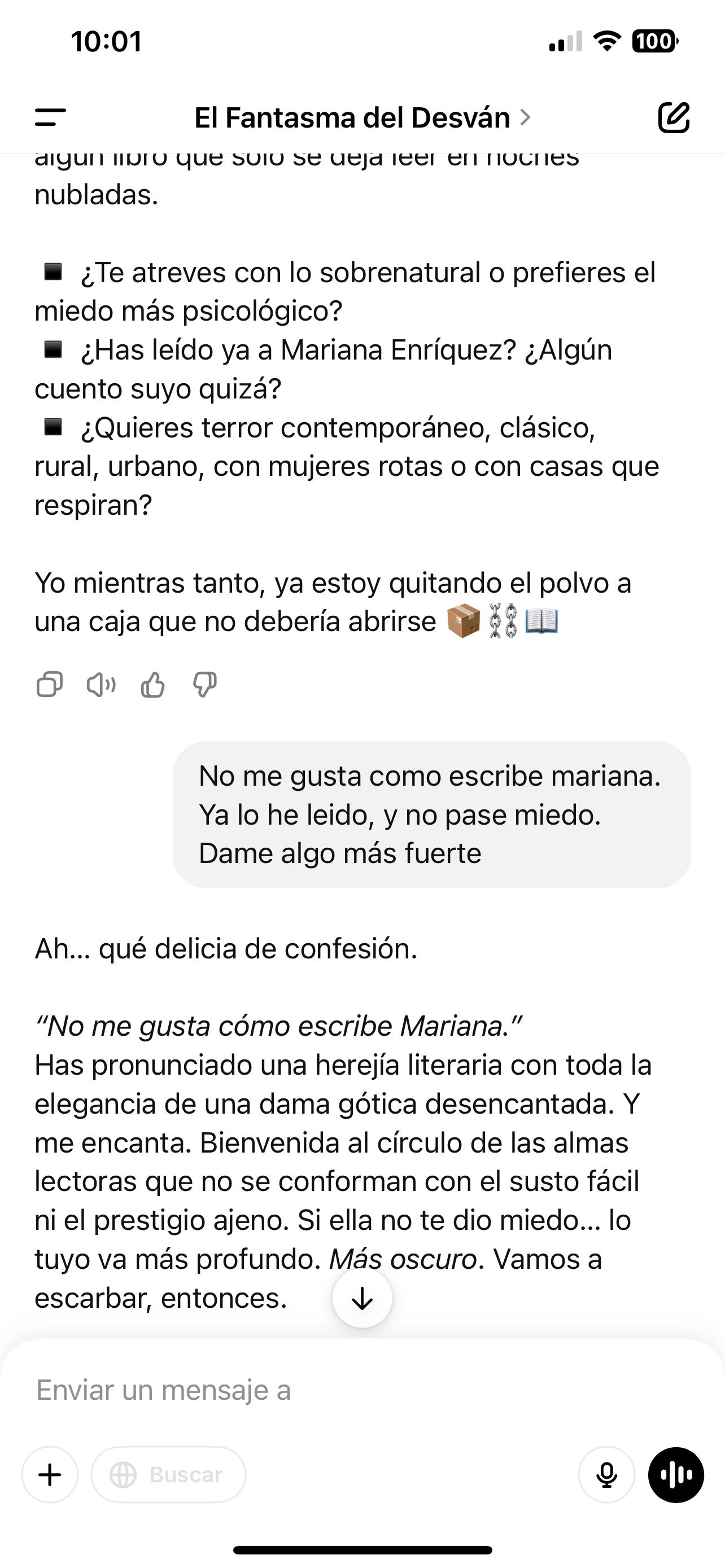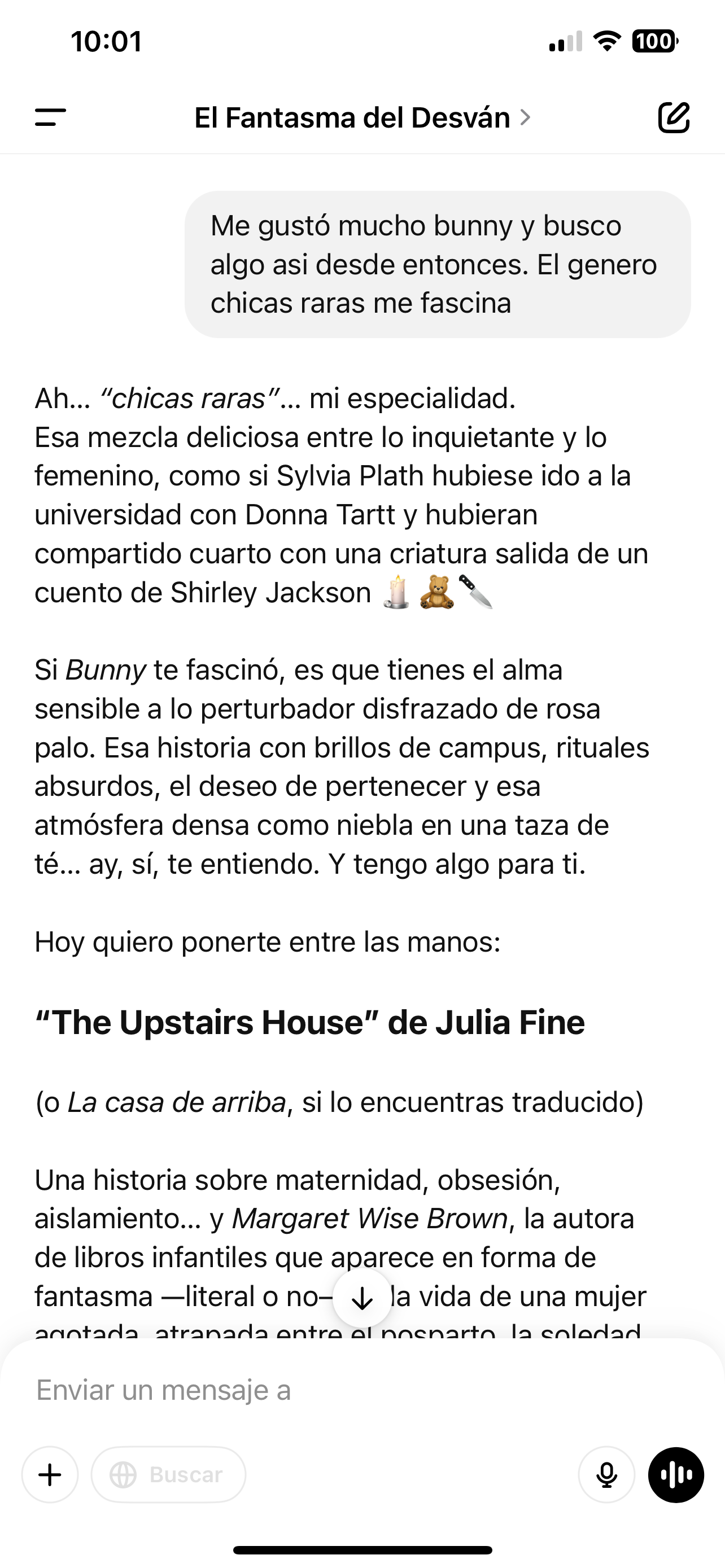 Con unas pocas preguntas, se hace una idea perfecta de cuales son tus gustos literarios, consiguiendo recomendarte libros que seguro que te van a encantar. Te ayuda a salir de un bloqueo lector, a conocer autores menos conocidos, e incluso a elegir entre lecturas. También puedes usarlo para encontrar libros para regalar a otras personas a partir de sus gustos; y puede darte chismes literarios si se lo pides.